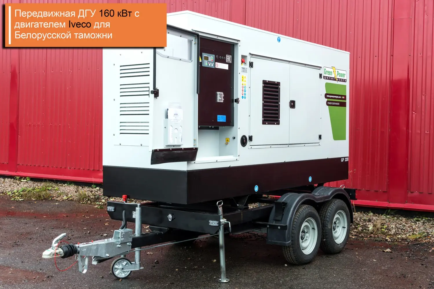 Frame version (open), in a soundproof case, containerized, on a chassis and enclosed