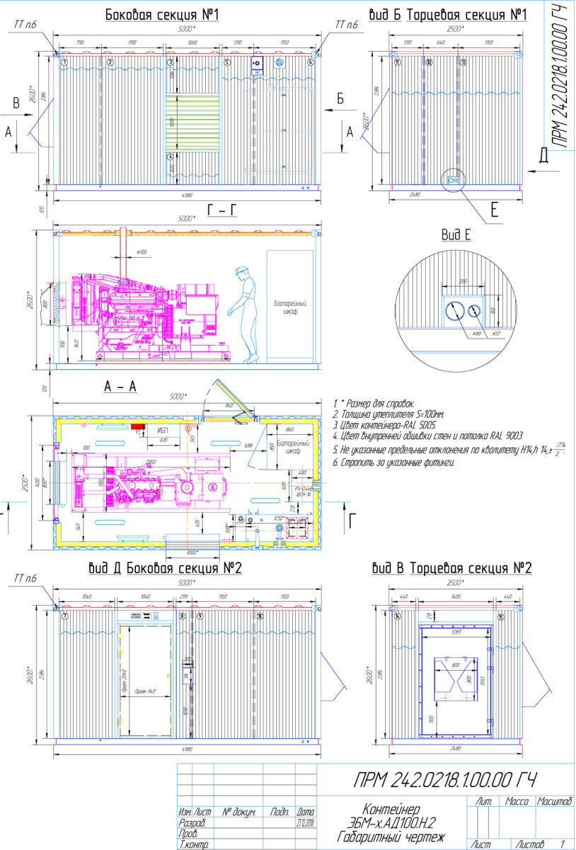 - Containers for installing frequency inverters and transformers, 8058х2438х3000 mm.