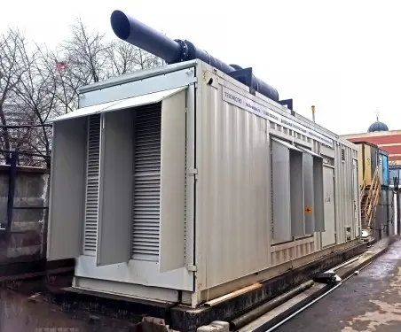 In April 2022, Techexpo company delivered a СТМ М1500 (Italy) containerized diesel genset based on a 1200 kW Mitsubishi engine with fuel tanks for 4960 liters for Botkin City Clinical Hospital of Moscow City Health Department State Budgetary Healthcare Institution of the City of Moscow. Botkin Hospital of Moscow City Health Department is the largest modern multi-discipline health facility in Moscow where over 100 000 people are annually treated. The Botkin Hospital structure includes 11 specialized healthcare centers. The Botkin Hospital territory is almost 20 ha of land in the center of the city on the Khodynskoe field. The hospital manages 48 buildings with a total area of about 200 000 square meters. TE.1200С-T400-2RN (1200 kW) genset is manufactured based on a Mitsubishi S12R-F1PTAW2 engine and Stamford P734D (UK) generator. DG equipment includes: ComAp AMF25 control panel, industrial silencer, electric coolant heater, generator circuit breaker, auxiliaries board, ventilation, lighting, gas exhaust systems, a security and fire alarm system and an automatic aerosol fire extinguishing systems are installed. The floor, walls and ceiling of the container have a layer of thermal insulation at least 100 mm thick. 9150х2450х2900 mm all-welded container consists of four compartments: