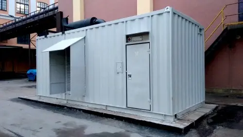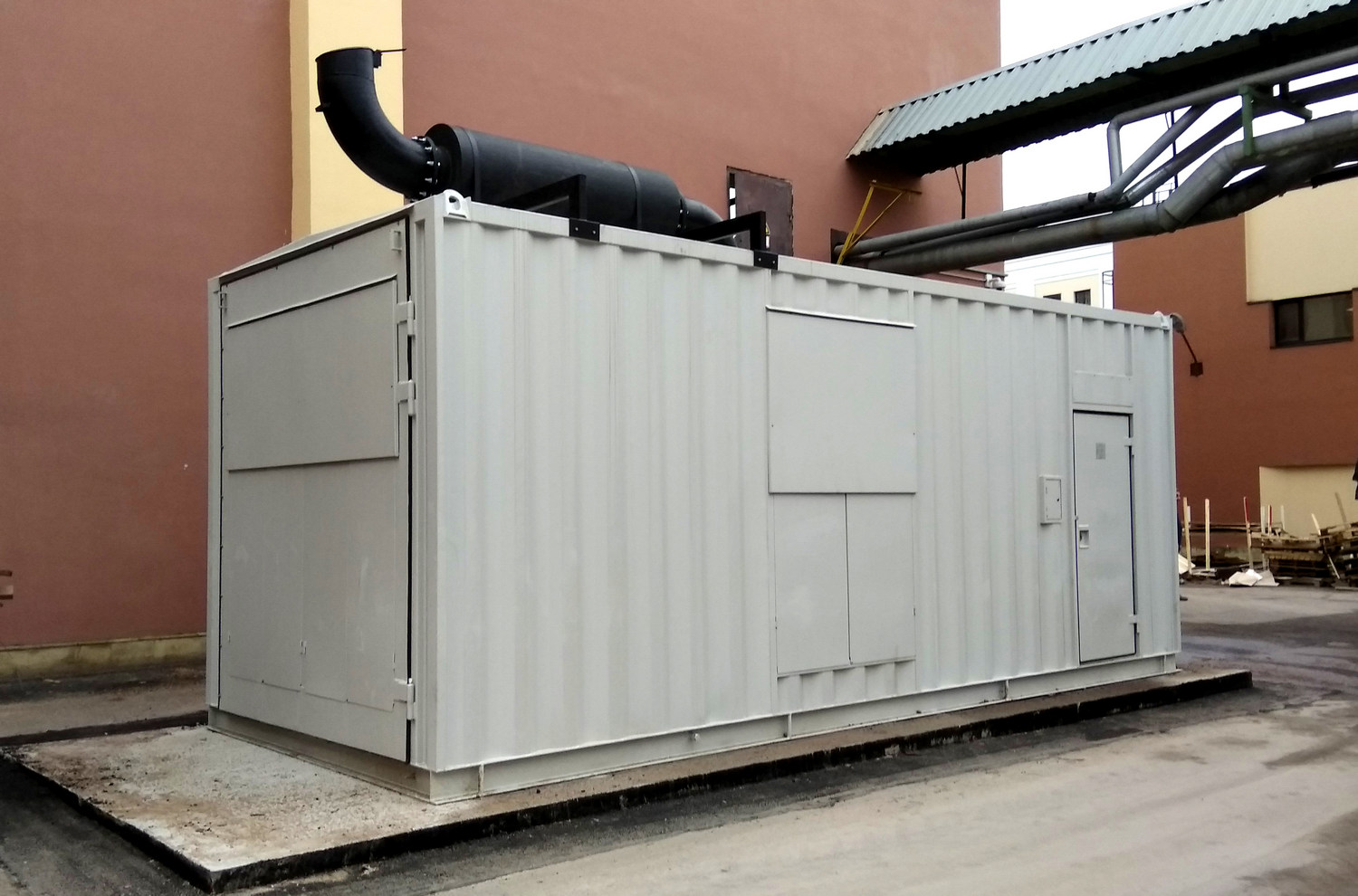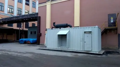 The genset location, diesel genset model and design, connection method were determined. A 1000 kW HV diesel genset will operate as a redundant power supply and start only when the mains voltage is lost. The diesel genset will not operate in parallel with mains; the switch is manual. The containerized diesel genset is mounted on a foundation plate outdoors nearby the factory building. The container consists of the next systems: