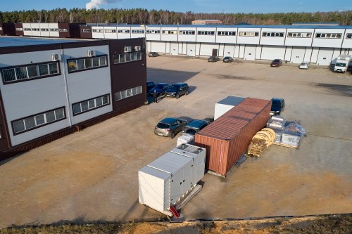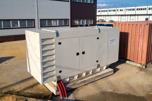 In 2021, Techexpo LLC developed a project for a backup power supply system with a DG TE.320S-Т400-2RP based on a Doosan (P158LE (398 kW) engine for four warehouses of Katrosa Reaktiv (supplier of chemical reagents). The encased DG was delivered to the Moscow region, and construction and installation works were carried out: trench excavation, cable laying (VVG 5x120, VVG 5x150, 5x70, 10x1.5), foundation preparation, tamping, installation of cable passages in the walls and partitions of the warehouse building, installation of ASU panels of the warehouse building and DG, pre-commissioning, load testing and commissioning of the DG. To ensure automatic switching from the main power source (TP exist., ASU1, ASU2) to the backup power source (DG), complete switchboards with ATS (ATS1, ATS2) are installed. VRU1.1-VRU2.4 are fed from Switchboard-ATS via separate CL-0.4kV. Automatic switching of lines for supplying ASU1.1-ASU2.4 to the DG is carried out using the control unit of Switchboard-ATS boards installed outdoors under a canopy near warehouse No. 1. The power supply of ASU1.1-ASU2.4 of warehouses in the operating mode is provided from the existing ASU1, ASU2 and TS 10/0.4 kV. In emergency mode, in the event of a power failure at the ATS1, ATS2 input, the built-in controller, using dry contacts, generates a signal to start the DG. Switching to the main/backup input occurs automatically. The load is limited by the currents of the incoming switches = 250A for each of the two outgoing lines from the ASU-1 and ASU-2. On the section from ATS to ASU warehouses - cable VVG 5 * 70 mm2 and cable VVG 5 * 120 mm2, with PVC insulation and a maximum operating temperature of + 70 °C. |