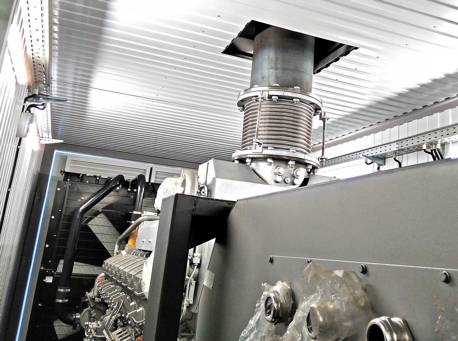 In 2021, Techexpo LLC manufactured a 4 MW power supply package for the Baltic gas chemical complex in Ust Luga. We delivered two high-voltage containerized DGs by 2 MW with prefabricated unilateral maintenance chambers - block automated containerized gensets ТE.1800S-Т10500-2RN (BACG). The diesel gensets are powered by a Mitsubishi series S16R2 engine and a TH528G current generator, voltage 10,5 kV, with current and voltage transformers. The power supply package is controlled by a panel for parallel operation DSE 8610. A high-voltage generator cell with a voltage transformer ensures the parallel operation of the diesel genset with each other. The cell is mounted inside the container and tied with DG cables. A 1000 l fuel tank with an automatic fuel pumping system from an external tank is provided, as well as a set of spare parts and accessories for 3000 hours, filters (oil, fuel, air). Power supply package configuration: