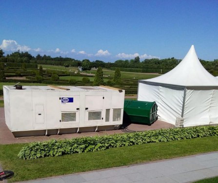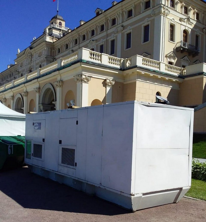 In July 2019, Techexpo leased a 509 kW FG Wilson P700E5 diesel genset for a private event in the territory of Dvorets Kongressov state complex in the Konstantinovsky Palace park, Strelna city. An independent power supply source is necessary to power an A/C system, a lighting system, to provide sound equipment operation including scenic machinery, connect media systems. The genset met the raised requirements of the event location: low noise and vibration level, ecological compatibility, stable voltage required for telecommunication equipment operation. Our specialists delivered and assembled the equipment and provided 3-day 24-hour diesel genset maintenance. We provided the genset with fuel for the event duration.