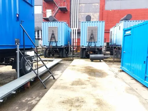 installation of the diesel generator and the switching cabinet in the design position, installation of the cable route, connection to the existing power plant;