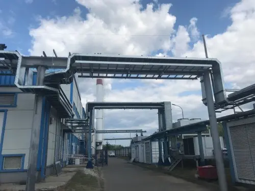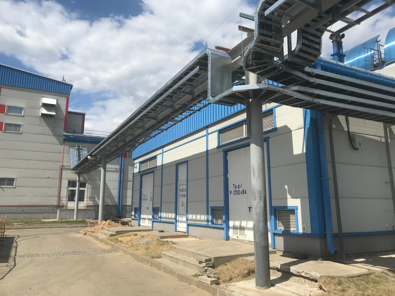 The project provides for routing cable lines from the diesel genset to a production building. Cables are laid in metal cable trays 600х50 and 100х50 with a cover. Cable trays are fixed with mounting elements. The route length from the diesel genset to the main distribution board is 43 m +10% = 47 m. The jumper length from the 2500А automatic breaker to the common bus is 10 m. The route length from the main distribution board to the input distribution device VRU2.2 is 105 m +10% = 115 m. To route cable trays between the existing diesel genset and the production building, the project provides for installing a metal trestle. The trestle supports are made from a 300x8 steel pipe and a 40SH2 H-beam. All steel structures are double-coated with enamel and double-coated with primer G-021. All welding seams are performed with manual arc welding. The project provides for a pile foundation for installing trestle supports.
