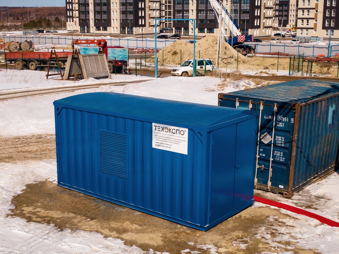 To deliver a Techexpo genset TE.320S-T400-2RN Iveco with an ATS panel in an all-welded container as the primary source of power for a construction camp (heating, lighting). In March 2022, Techexpo delivered a diesel genset Techexpo TE.320S-T400-2RN Iveco with a power of 350 kW based on an FPT (Iveco) C13 TE3A (Italy) engine with an ATS panel in an all-welded container for Gorizont СС LLC. Gorizont construction company offers a range of work in the engineering and construction of social facilities, residential buildings, multi-purpose complexes, power engineering, and infrastructure facilities. Genset provides a construction camp's permanent and uninterruptible power supply in Svobodny city (Amur region). Maintenance service, spare parts, and maintenance tools for maintaining the DG for 5 months were included. Techexpo engineers installed a fuel pumping system and an additional 1000-liter fuel tank into the DG. They installed the ATS panel. The dimensions of the containerized genset are 5000х2350х2500 mm, DG weight is 6500 kg. |