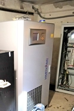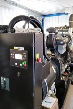 · The UPS provides an electric power supply during the automatic emergency power switch on. A 160 kW FOGO FDF200I with an Italian IVECO NEF67TM7.S500 engine and a Leroy Somer TAL 044M 6S/4 generator are housed in a container unit based on an all-welded construction. Container dimensions: 7000 mm х 2350 mm х 2450 mm. III fire resistance rating. The container interior space consists of two compartments: