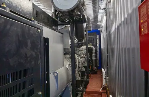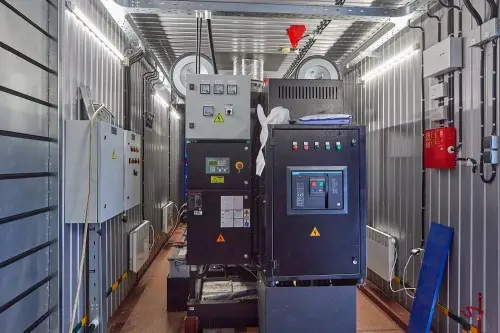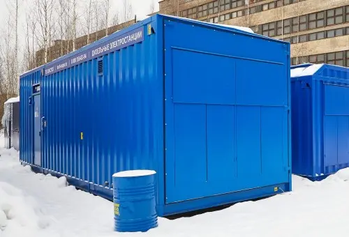 1. TE.1600S-T400-2RN diesel genset with a built-in control system; 2. External fuel tank with a volume of 10 cubic meters, underground installation (double-walled tank RG10) with FePetro STP75 submersible pumps; 3. Process rack for laying pipelines and cables from the container unit to the underground fuel tank. 4. 200 kW load resistor. |