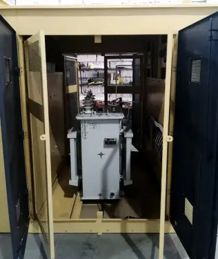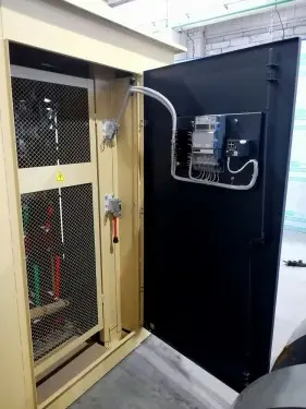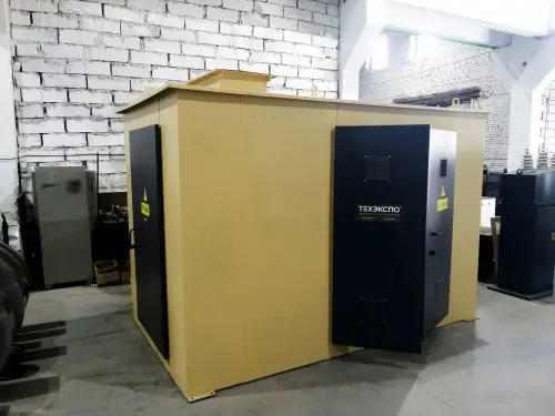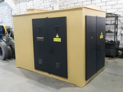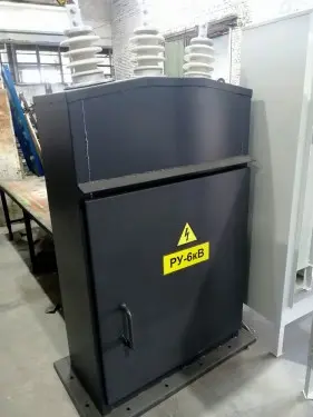 A kiosk-packaged transformer substation for cable and overhead networks is designed to receive, transit, convert and distribute three-phase alternating current with a voltage of 6/0.4 kV and a frequency of 50 Hz. The climatic version of the substation - UHL1 - for a temperate and cold macroclimatic region and for outdoor operation with the influence of any atmospheric factors (rain, heavy rain, snow, dust in strong winds). The power transformer of the TMG-160/6 series - 0.4 kV series is used to lower the high voltage in the electrical networks with a voltage of 6 kV of the supply network to the set consumption level. |