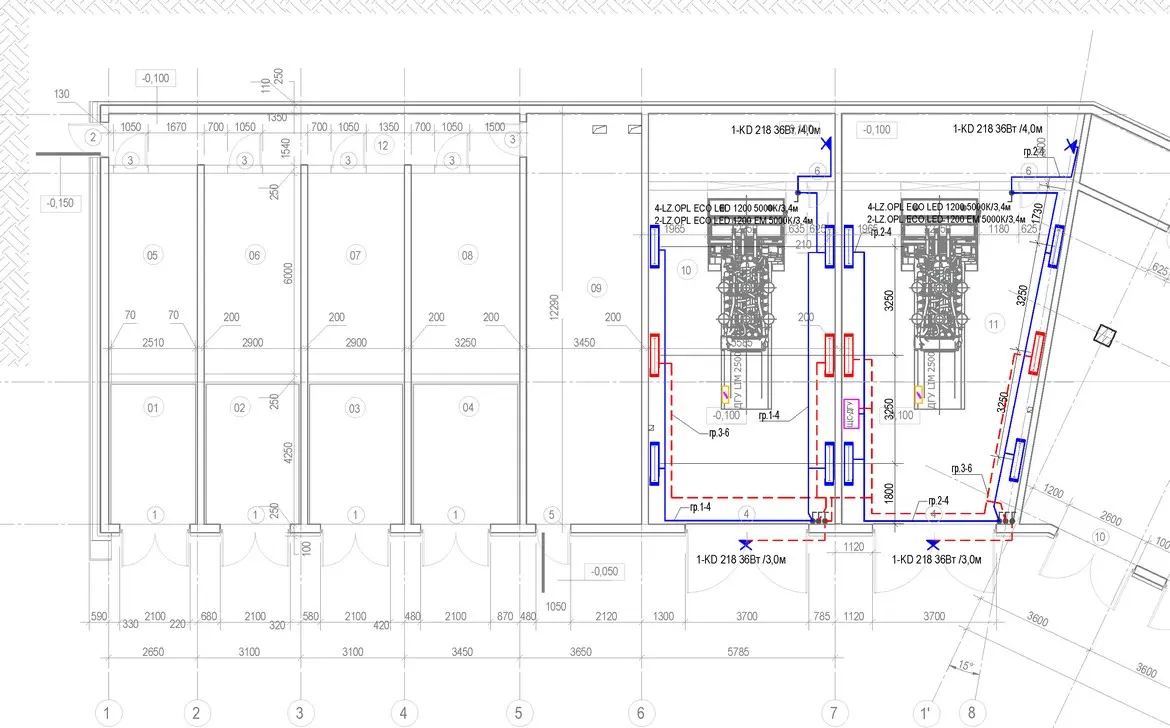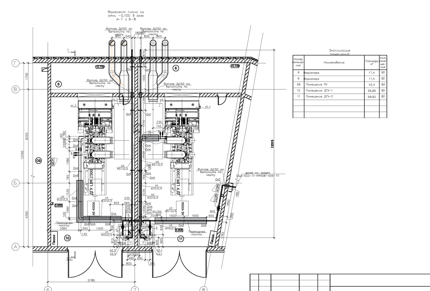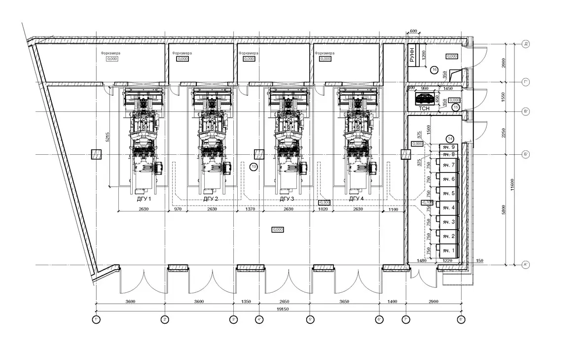 The open-type gensets are located in the building of the transformer substation in a separate room for every diesel genset